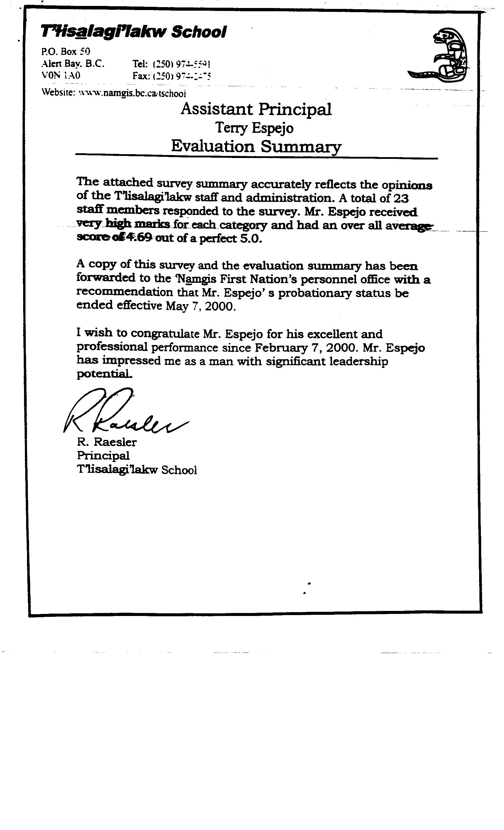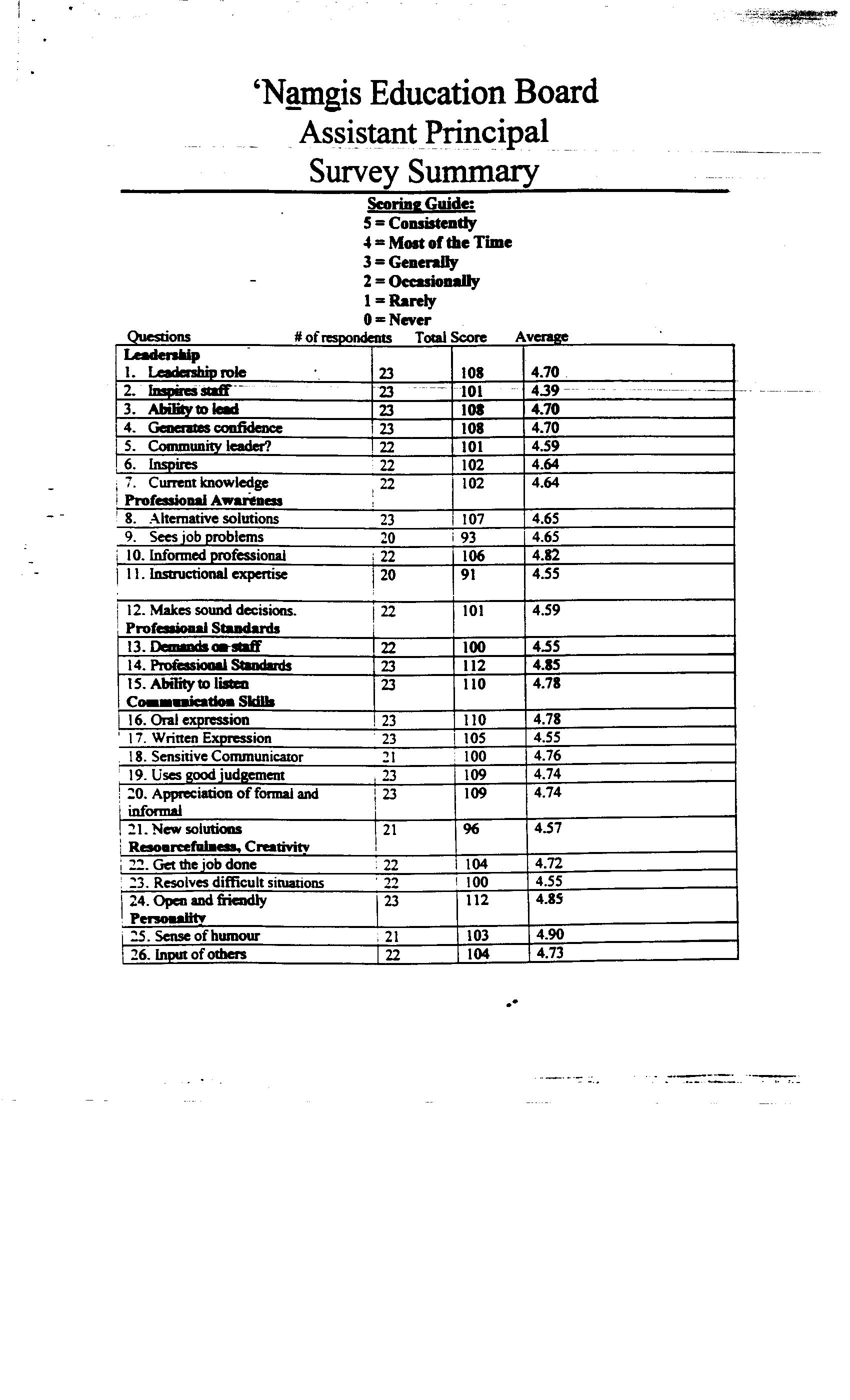 Assistant Principal Evaluation Summary